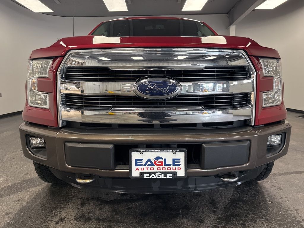 Clean CARFAX. Ruby Red Metallic Tinted Clearcoat 2016 Ford F-150 Lariat 4WD 6-Speed Automatic Electronic 5.0L V8 FFV 4X4, Leather Seats, Power Windows & Locks, Alloy Wheels, Remote Start, Cruise Control, BlueTooth Compatible, Reverse Back up Camera, 4WD, 110V/400W Outlet, BLIS Blind Spot Information System, Chrome 3-Bar Style Grille w/Chrome Surround, Chrome Angular Step Bars, Chrome Door & Tailgate Handles w/Body-Color Bezel, Chrome Skull Caps on Exterior Mirrors, Equipment Group 501A Mid, Lariat Chrome Appearance Package, LED Side-Mirror Spotlights, Power Glass Sideview Mirr w/Body-Color Skull Caps, Remote Start System w/Remote Tailgate Release, Reverse Sensing System, Single-Tip Chrome Exhaust, Universal Garage Door Opener, Wheels: 18" Chrome-Like PVD.